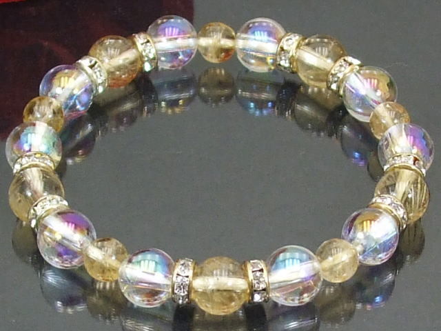 - ★☆★11月誕生石 シトリントパーズ&アクアオーラ水晶 ブレスレット 金運up! 誕生石で幸運get♪ パワーストーン 送料無料(a_r)b