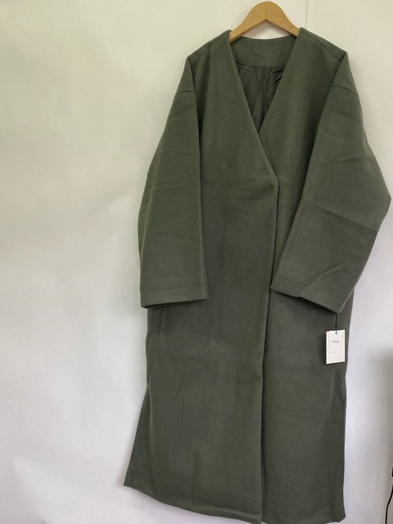 - 【タグ付新品】GRLグレイル コート ロングコート ノーカラーコート カーキー シンプル