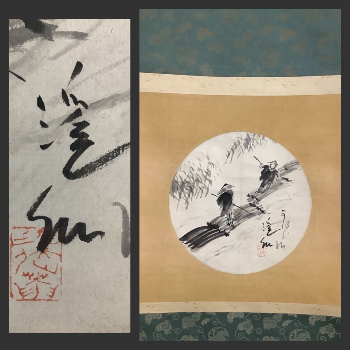 - 【模写】掛軸Fe782B[冨田渓仙 桂川之図]紙本 書いたもの 木箱/日本画 山水画 四条派 南画 富田渓仙 丸型色紙 都路華香師事