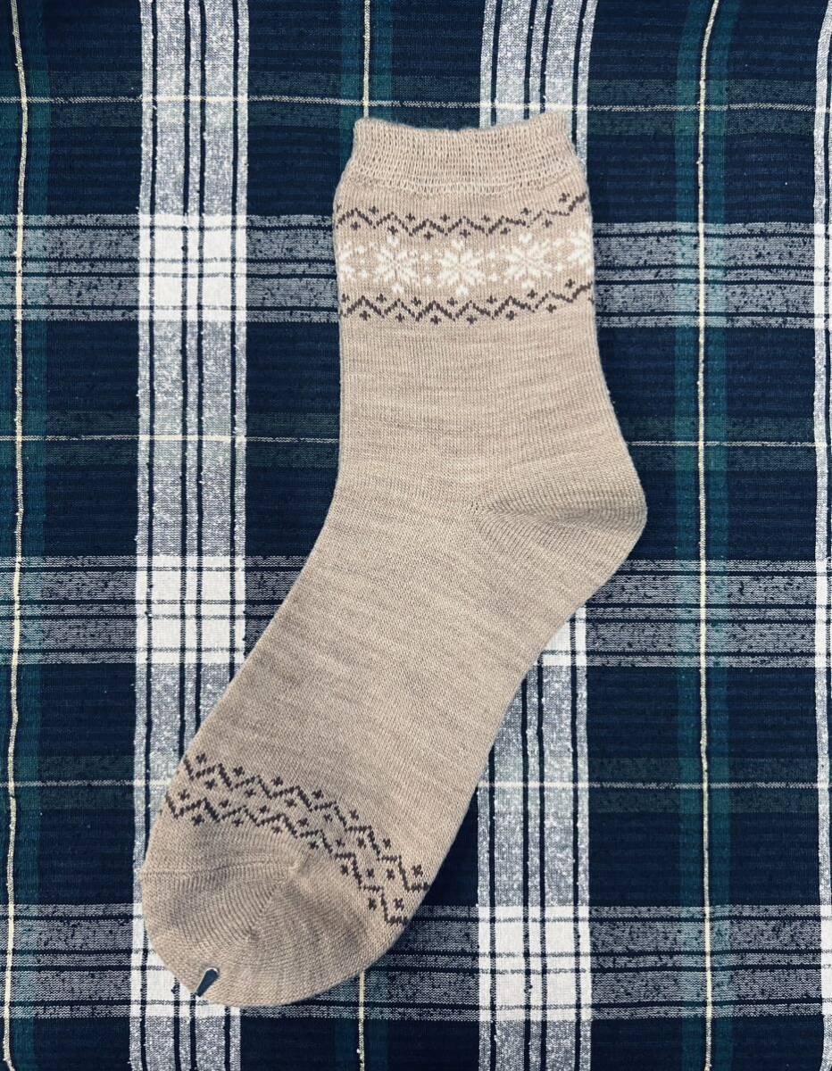 - 日本製 シルクウール靴下 ベージュ 雪柄
