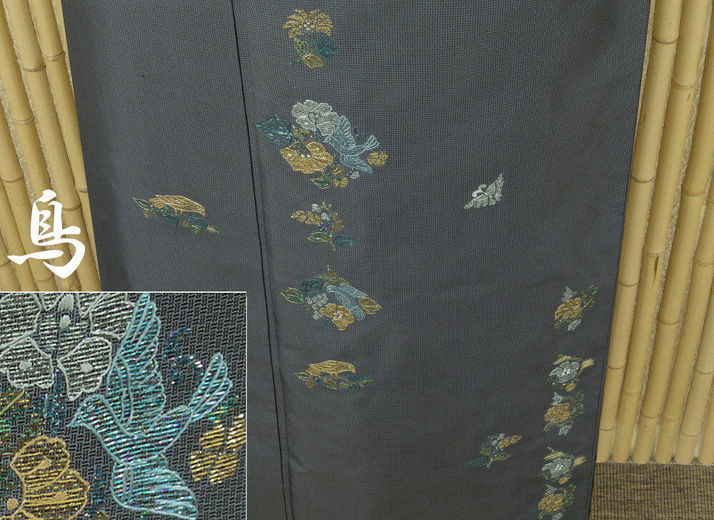 - 【京かんざし】143★中国蘇州刺繍 本場奄美大島紬「製造者 森輝男」証紙付き身丈167 cm裄丈67.5 cm★即決送料無料!