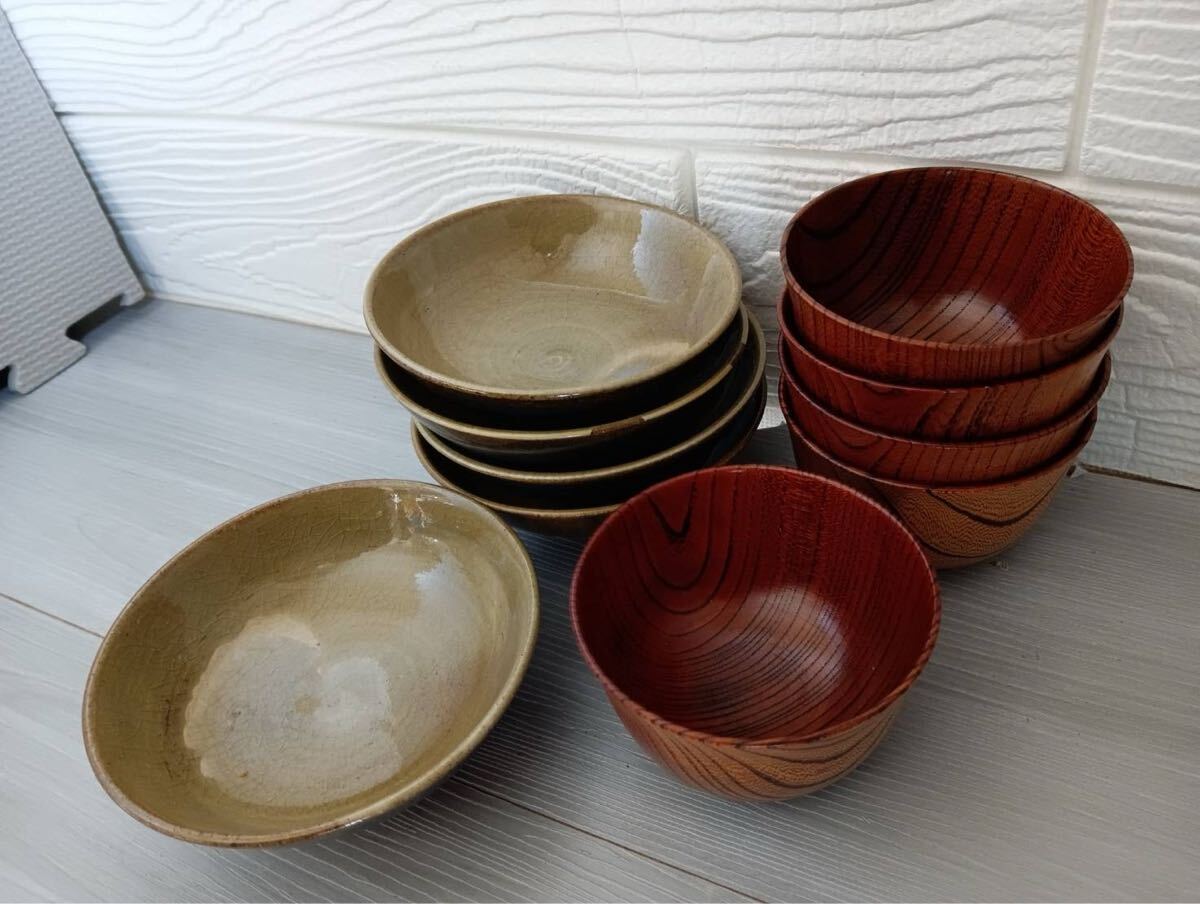 - K90☆小皿セット☆陶器皿 木椀 5客ずつセット 家庭用 和食 飲食店用