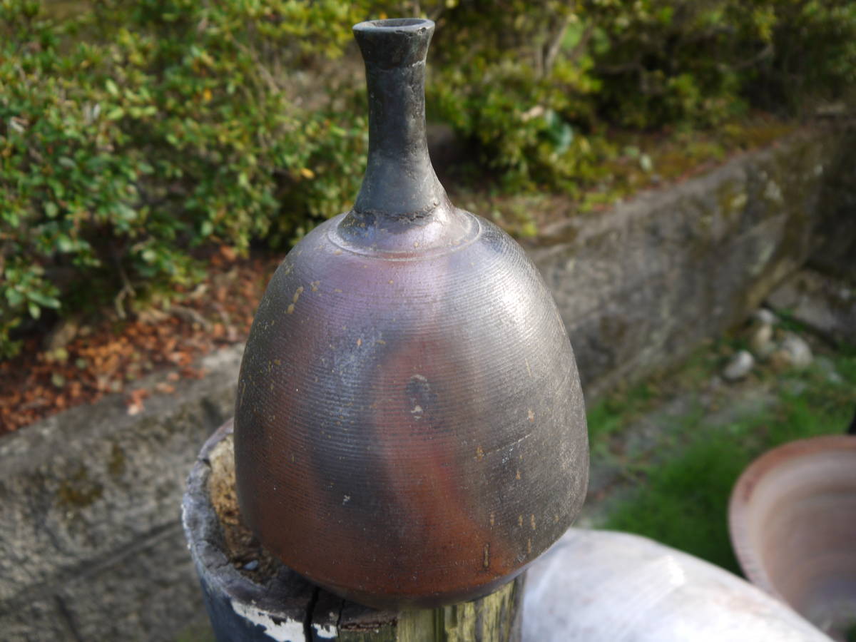 - ★【A10803】古丹波自然釉 大徳利26cm船徳利 焼締 自然釉 日本六古窯 常滑 備前 越前 茶道 華道 花活 壷