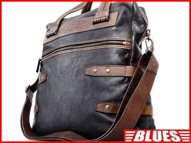 > 即決★Cole Haan★オールレザーショルダーバッグ コールハーン メンズ 紺 茶 本革 かばん 本皮 カバン 鞄 トラベル レディース