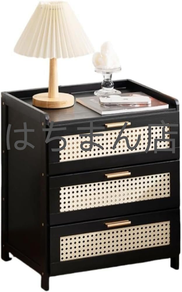 - サイドテーブル 木製 ナイトテーブル 引き出し付き 多機能 収納 ナイトテーブル ベッド周り収納 大容量です (黒です,3層引き出し)