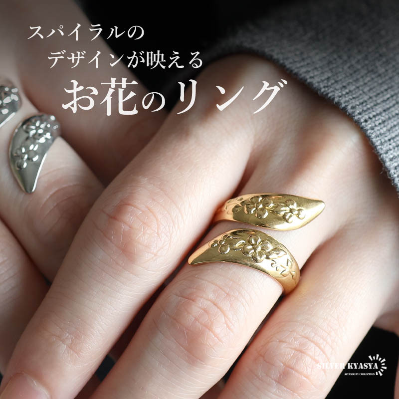 > (シルバー) ステンレス 巻き付く スパイラルリング お花リング ゴールド 18K GP フリーサイズ 女性 金属アレルギー対応
