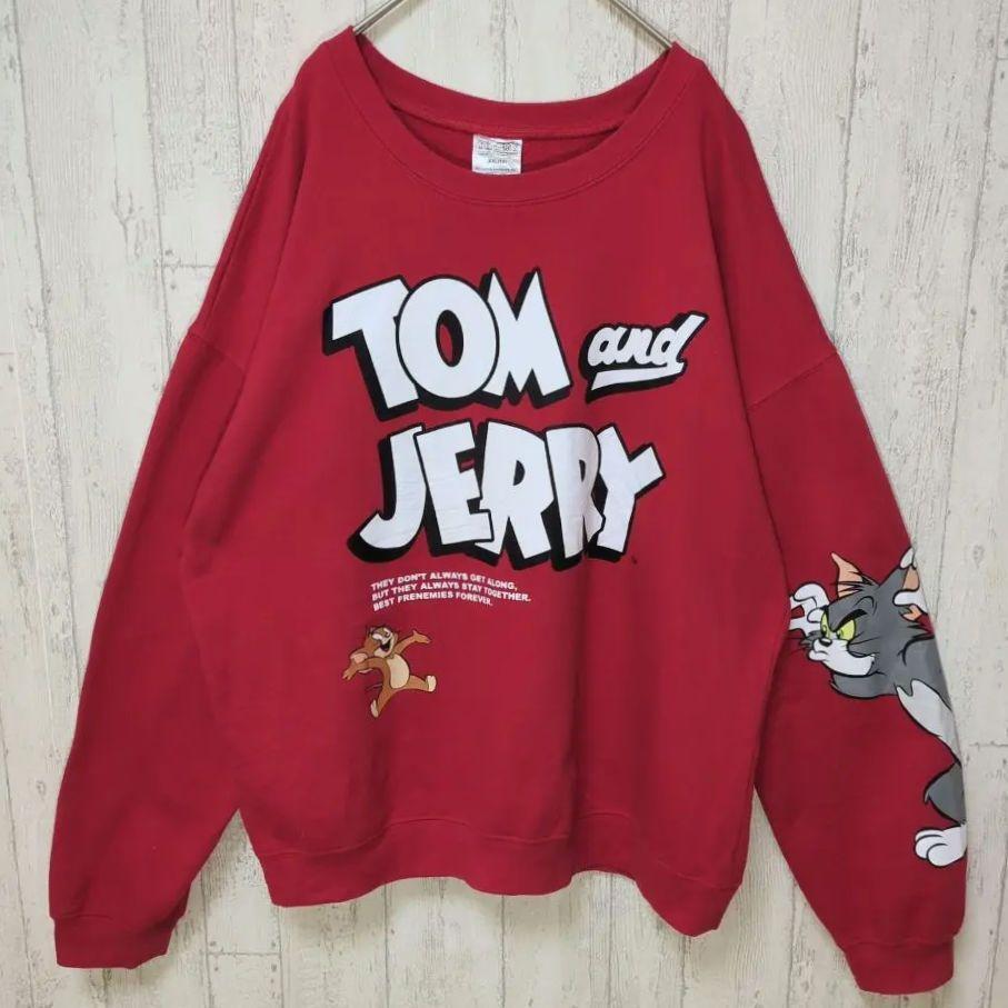 - トム&ジェリー スウェット USA古着 レッド オーバーサイズ 袖プリント #h900