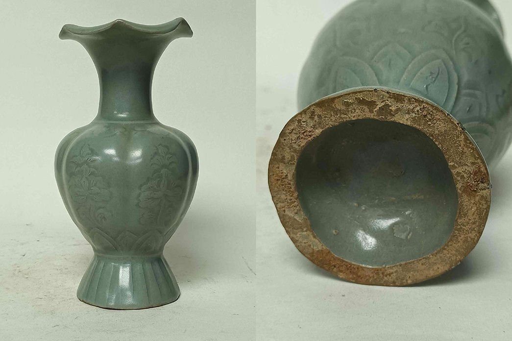 - ▼渡鶴羽▼T0313コレクター放出 朝鮮古陶 朝鮮古美術 高麗磁 古高麗 李朝 高麗青磁刻花瓶