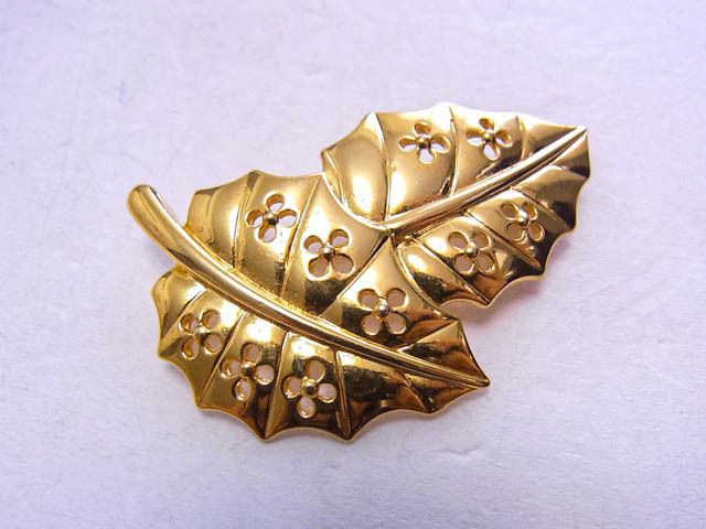 - 《古美術京松》【アクセサリー】 ブローチ 葉っぱ R6W-301