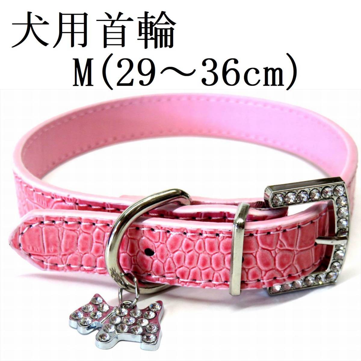- 首輪 M ピンク 首回り29~38cm前後 幅1.8cm 小型犬 中型犬 クロコダイル柄 PUレザー ワニ柄 イヌ型 キラキラ チャーム付き 犬用 散歩