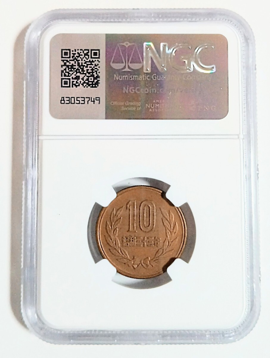- ■★NGC硬貨・鑑定済・未使用品・特年 超希少品★昭和33年10円青銅貨★縁刻:ギザ十・ギザ10★1958年 ★鑑定済の超希少な1枚です。