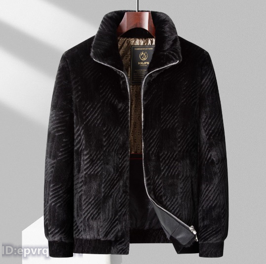 - ファージャケット 新入荷 メンズ ファーコート フェイクファー 無地 厚手 立ち襟 チェック柄 紳士 ブルゾン サイズ選択可 黒/2XLサイズ