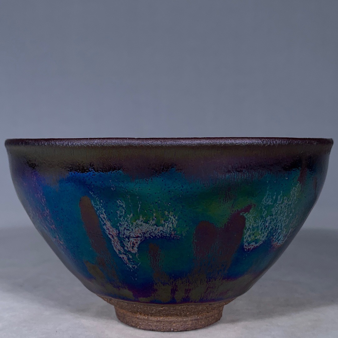 - ▽鴻▽ 宋 建窯 曜變 七彩 珍珠斑 天目盞 古陶瓷品 置物 古賞物 中国古玩 中国古美術