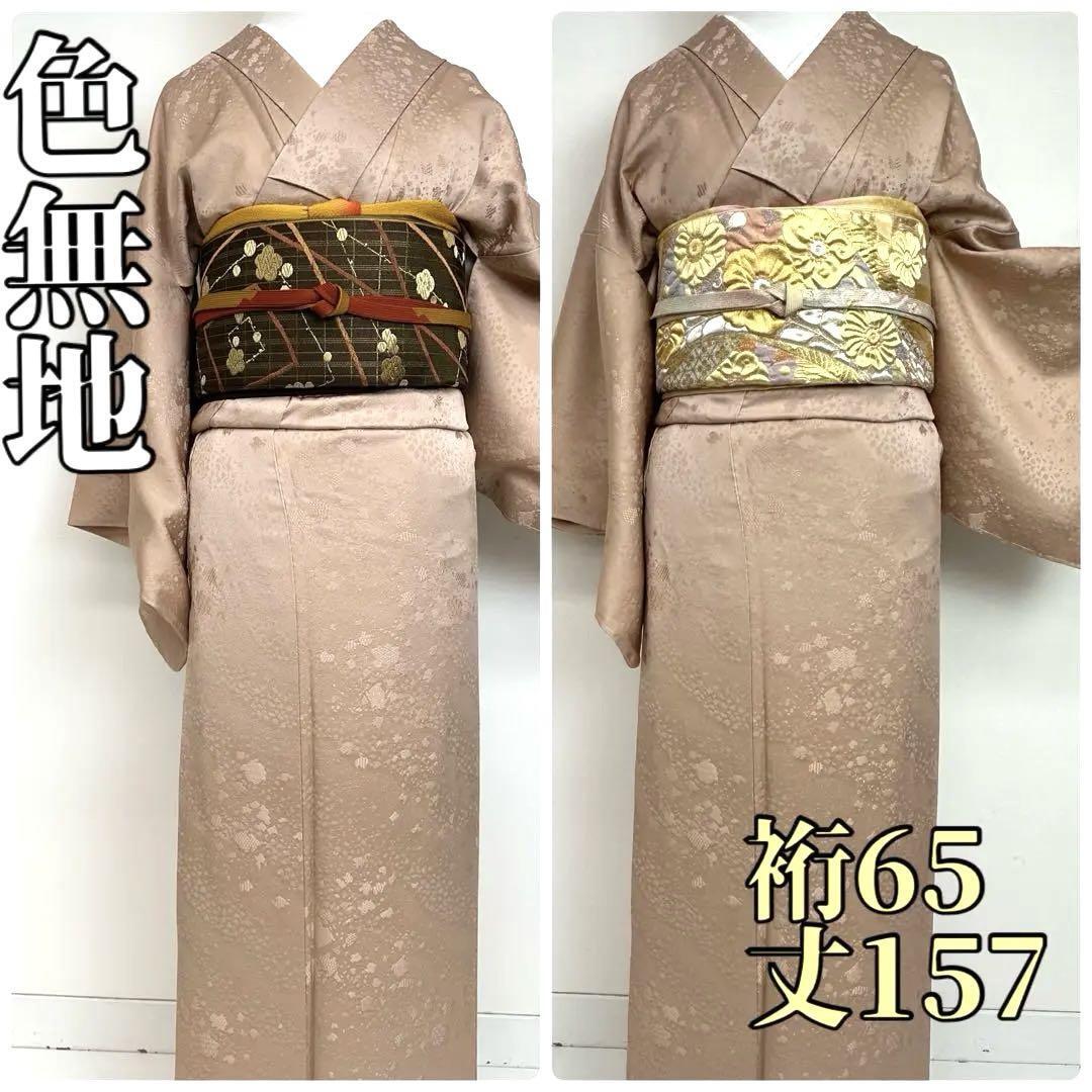 - 【着物と帯 時流】I25281◆正絹 色無地◆ピンクベージュ 一つ紋 美品