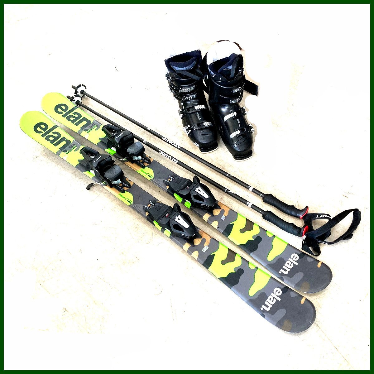 - 中古 ● elan/エラン ●FREELINE フリーライン スキー板 125cm 25.5cmブーツ/ストック/ビンディング付き 現状渡し ビンディング調整可