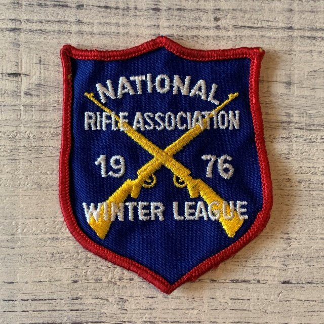 > 【9.0㎝×7.5㎝】1976 NATIONAL RIFLE ASSOCIATION ライフル×2 刺繍ワッペン 青■ビンテージ オールド アメリカ古着 雑貨 ハンティング