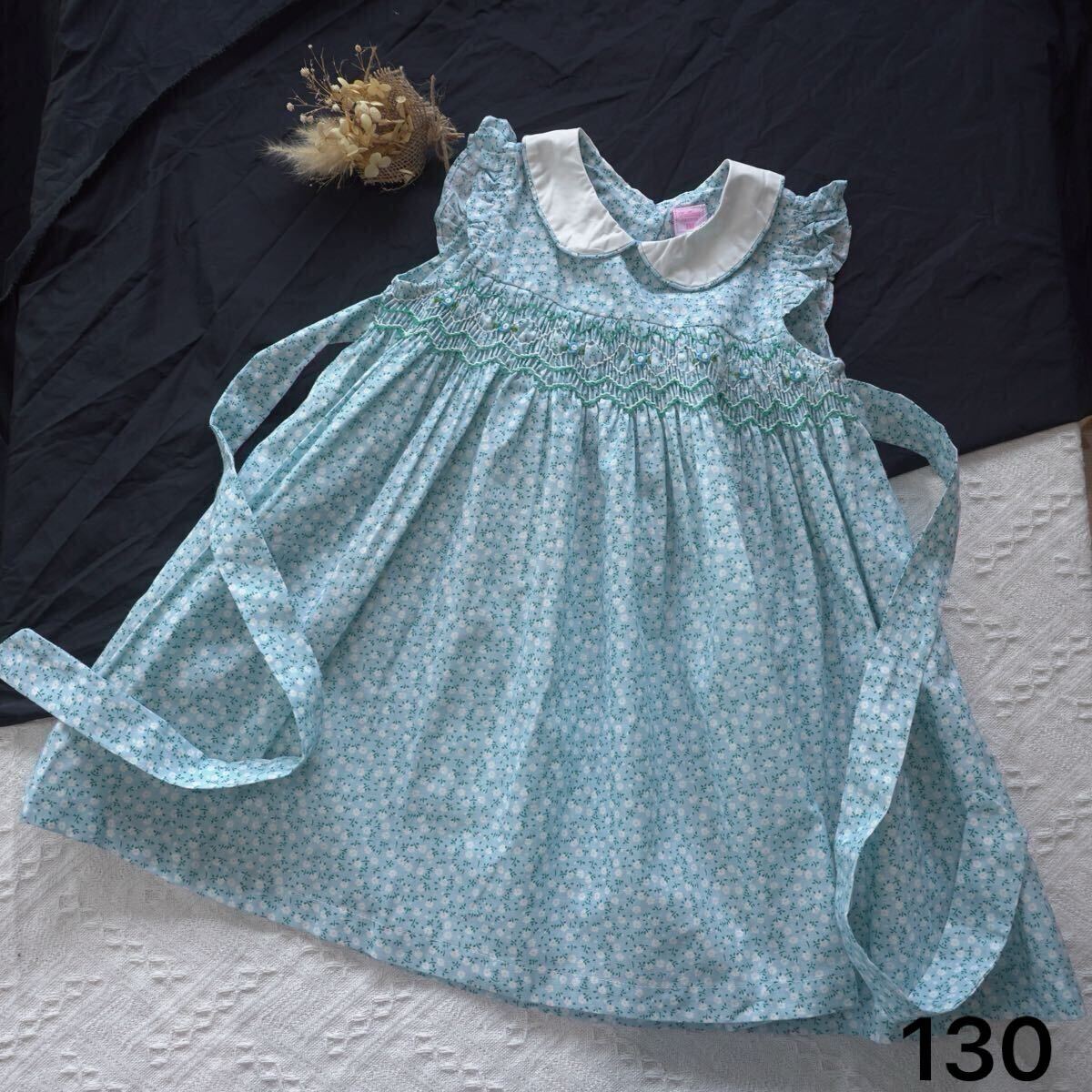 - 新品 スモッキング ワンピース キッズ服 女の子 ドレス 花柄 水色 ミント 小花柄 清楚 発表会 誕生日 卒業式 好きな方