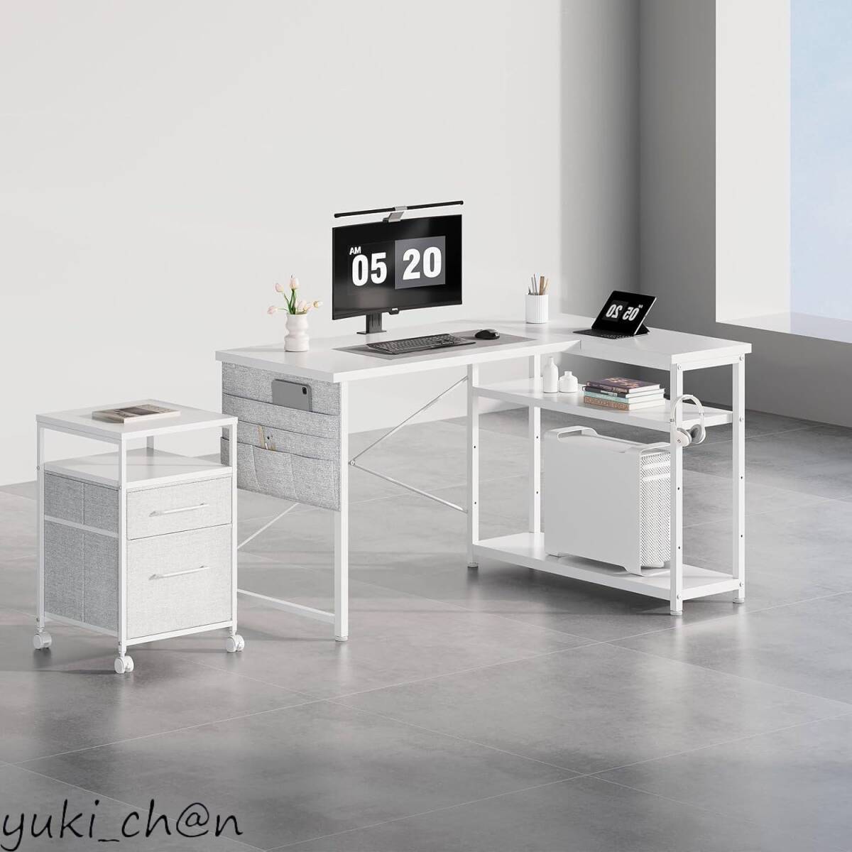 - デスク 机 pcデスク 右棚左棚 幅120cm パソコンデスク l字デスク desk 棚板高さ調節可能 ラック付き ホワイト