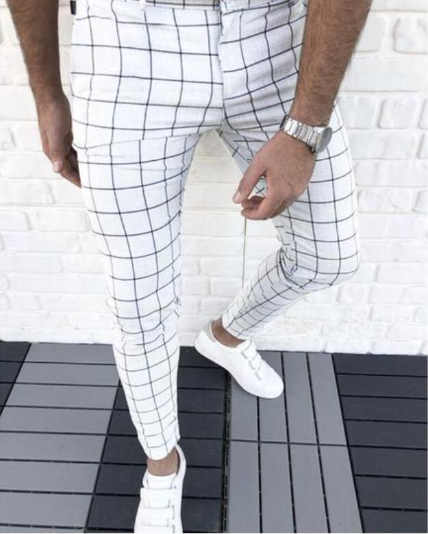 - 新入荷*S-3XL選択 スキニーパンツ メンズ チノパン スリムパンツ ストレッチ ボトムス ジョガーパンツ チェック柄 スウェットパンツ*白
