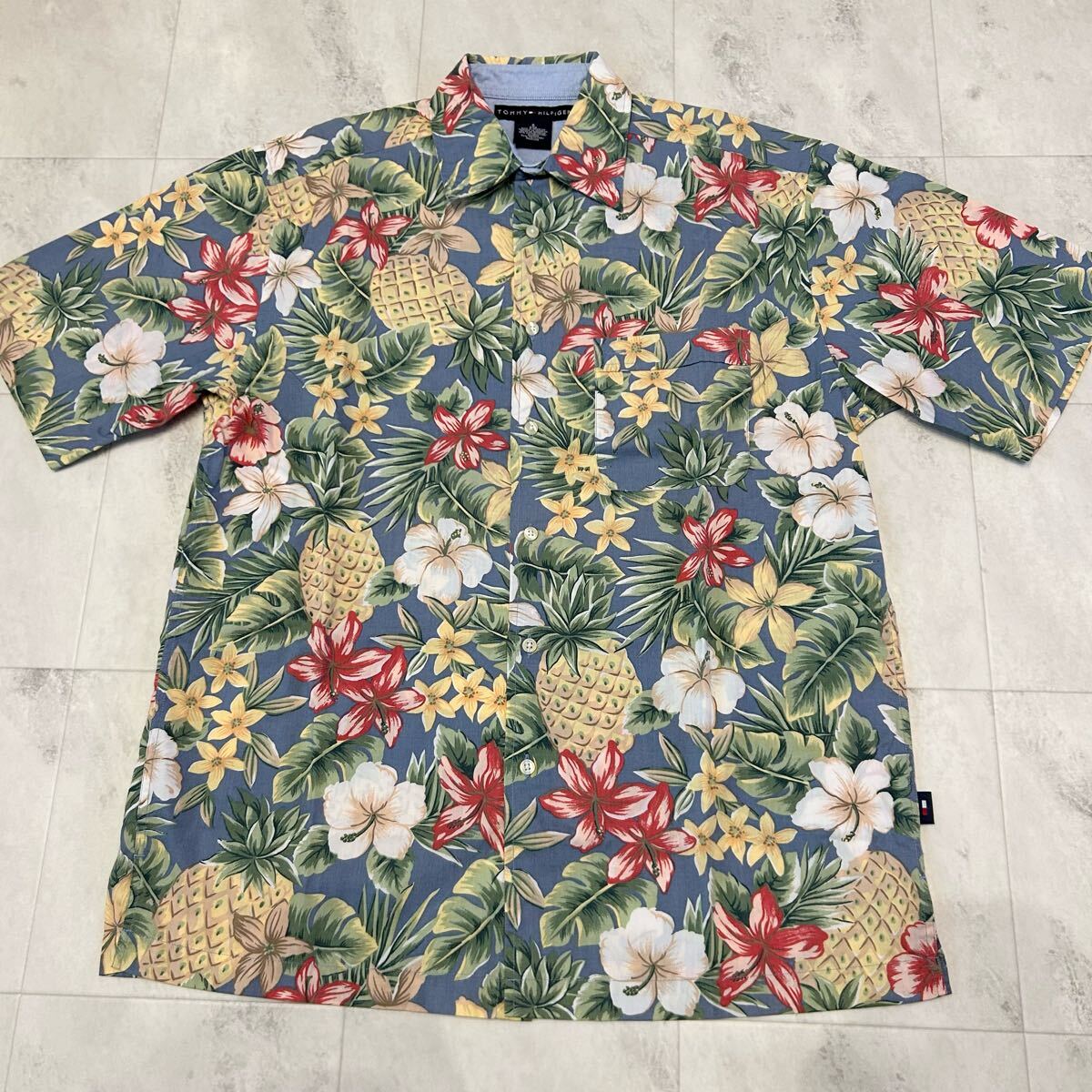 - 00s TOMMY HILFIGER トミーヒルフィガー 総柄 柄シャツ パイナップル ハイビスカス ハワイアン アロハシャツ