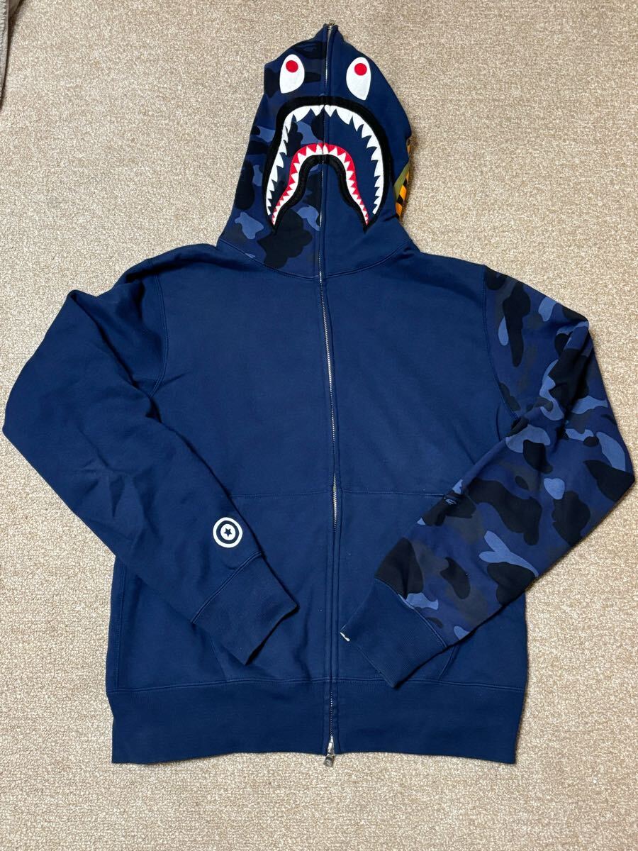 > BAPE ブルーカモシャークパーカーLサイズ a bathing ape BAPE