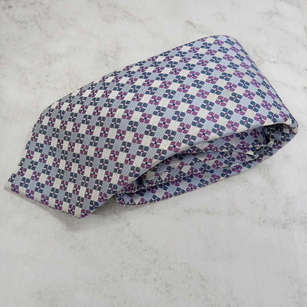 - アクアスキュータム ネクタイ 水色 小紋柄 シルク100% 絹【n311】