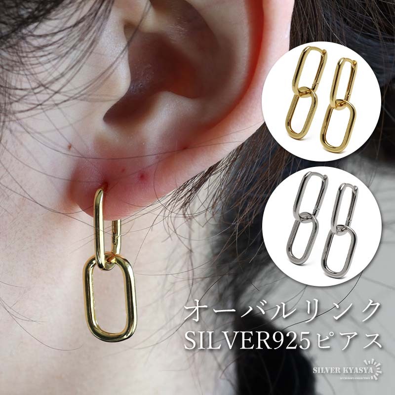 > (シルバー) シルバー925 2連ピアス オーバルピアス フープピアス メタルピアス 両耳2点セット レディース 金アレ対応