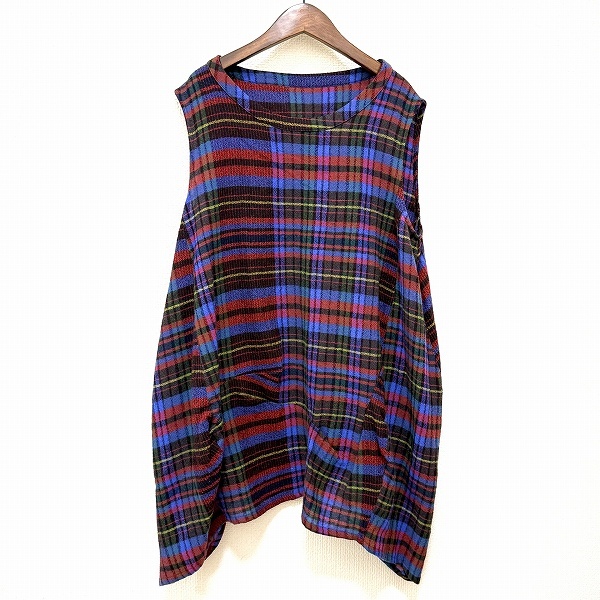 - #anc ジウセンソユニコ 慈雨 Sensounico チュニック 40 赤 青 黒 チェック ノースリーブ レディース [856309]