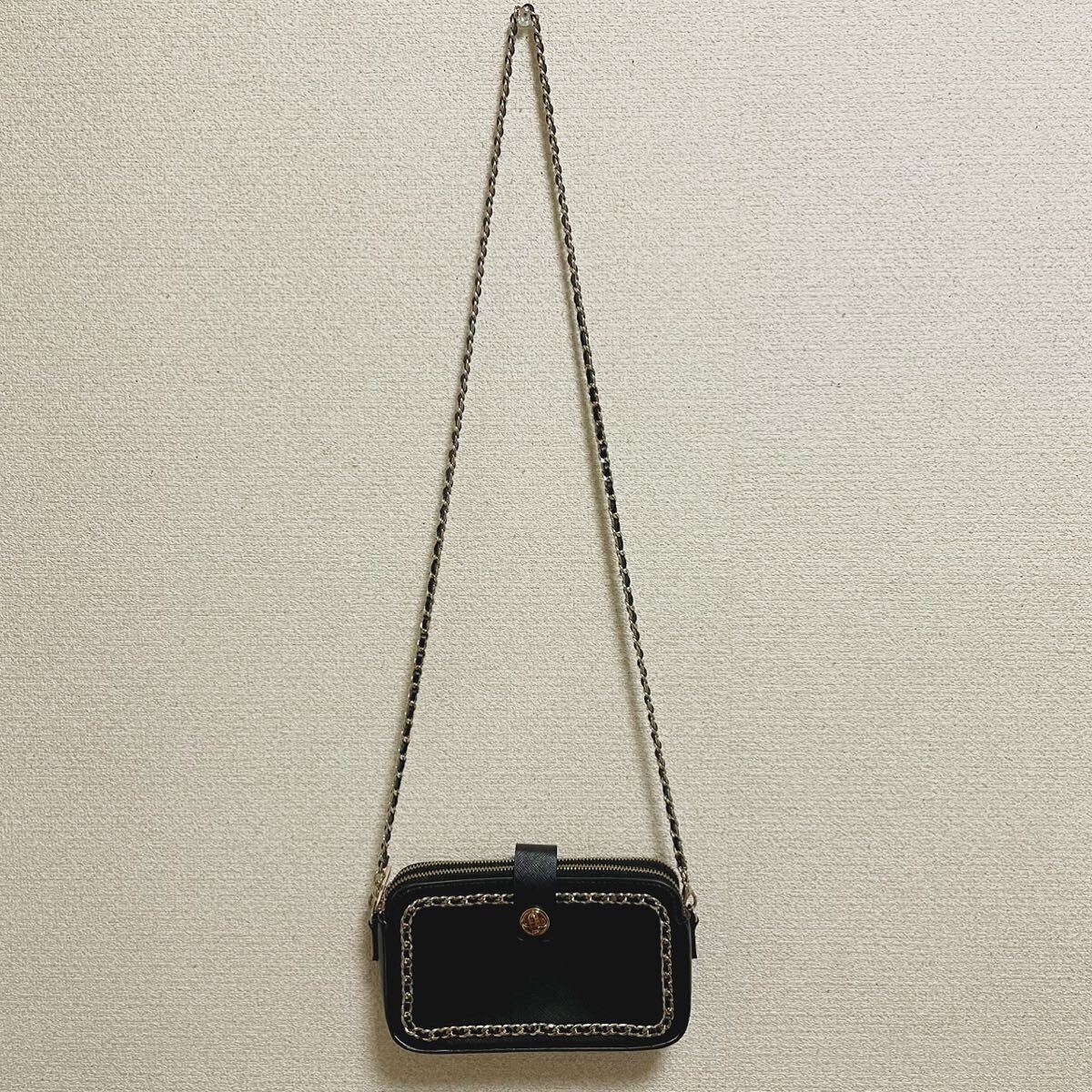 - 【美品】ZARA ザラ 黒 ブラック 金 チェーン ショルダーバッグ