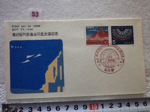 - FDC 第49回列国議会 2貼1消 1960年 名古屋印 解説書有 中村浪静堂●53●同梱大歓迎
