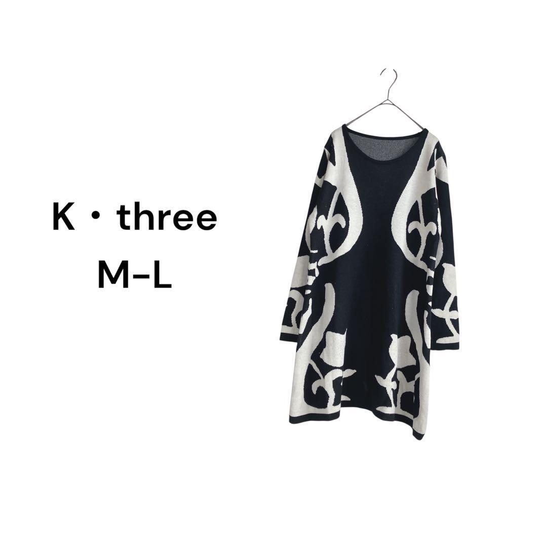 - K・three ニットワンピース【M-L】ストーン ビジュー 総柄 高肌触り