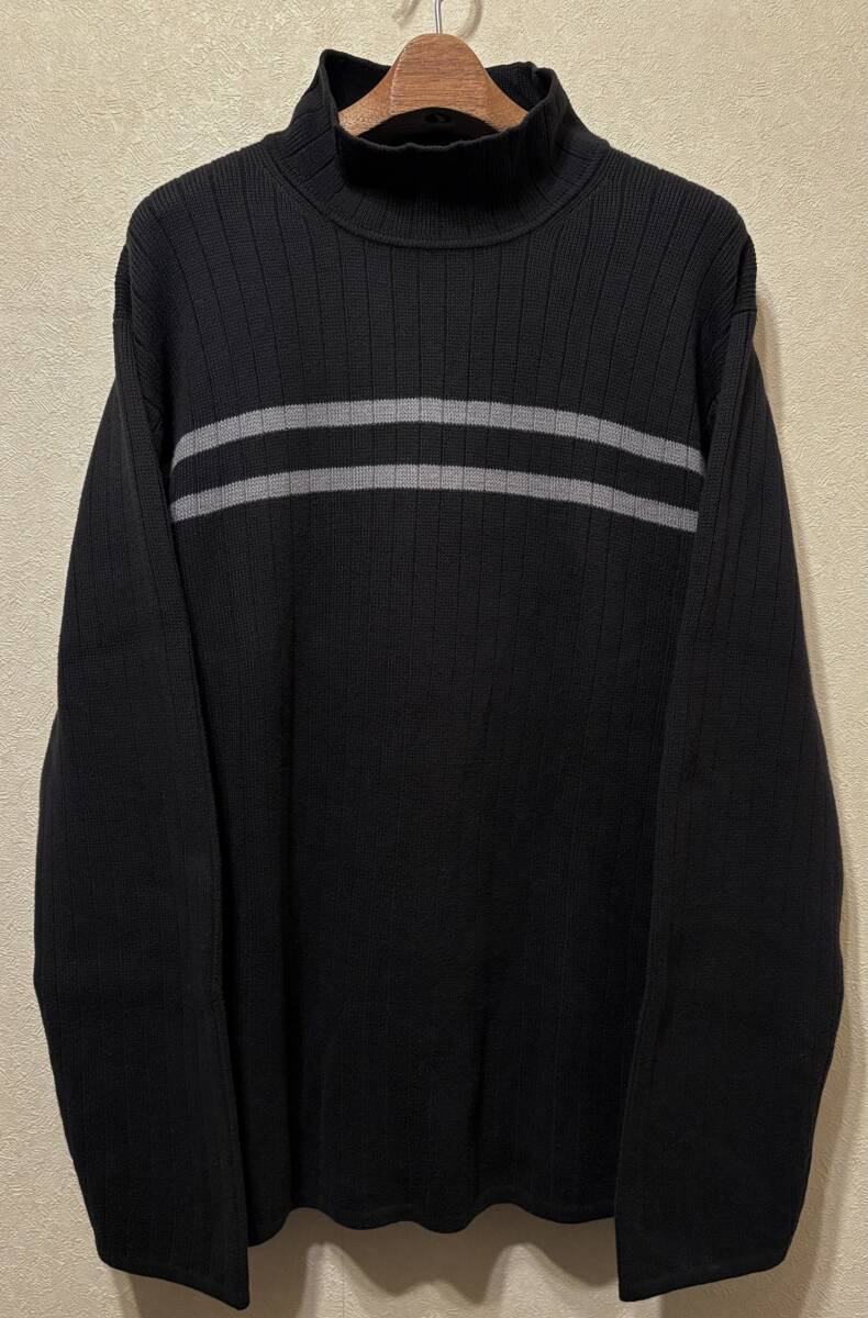 > 00s90sオールドCOLORADOモックネック良質コットン黒ニットXLグレー胸ライン2本ヘビーウェイト太リブ編みy2k00年代2000s90年代ビンテージgap