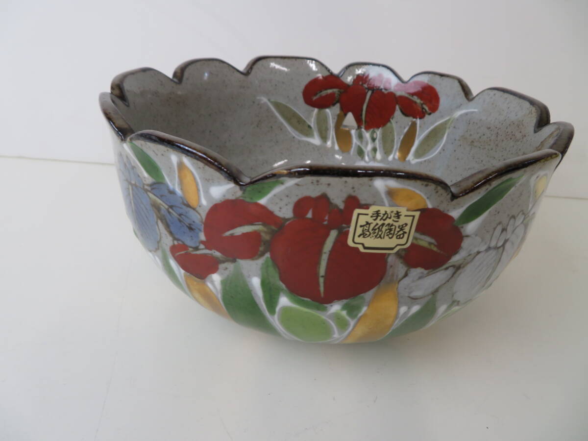 - □菓子鉢 茂山窯 高級陶器 手描き 赤絵茶道具 茶菓子 大鉢 穴あき 陶器 伝統工芸 アンティーク インテリア 保管品
