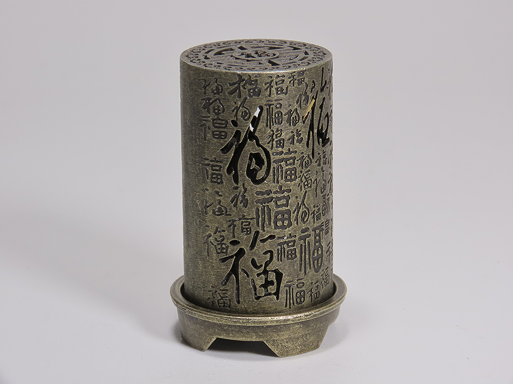 - 現代工芸品.小ぶりの丸い筒の銅製の香炉.新品未使用品