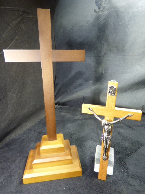 - ほ962【2点セット】イエス・キリスト オブジェ 壁掛け 木製台 置物 インテリア INRI コレクション クロス 十字架 宗教像