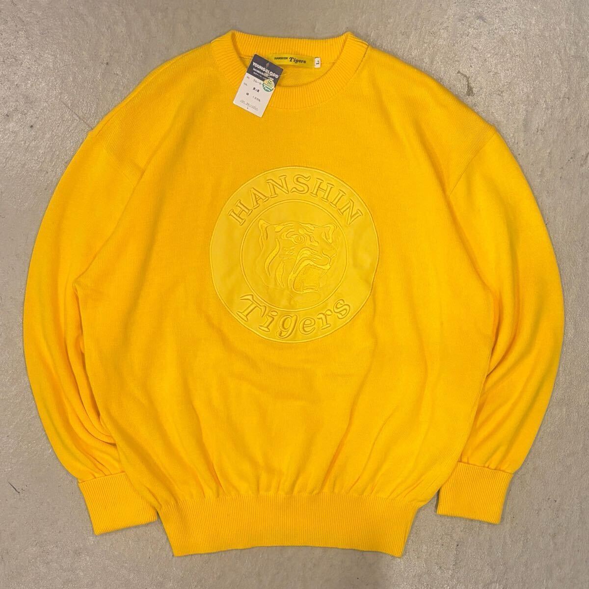 > 【新品未使用】阪神タイガース クルーネック コットン ニット セーター メンズ L 黄/YELLOW キャラクター ロゴ 刺繍 プロ野球 応援 グッズ