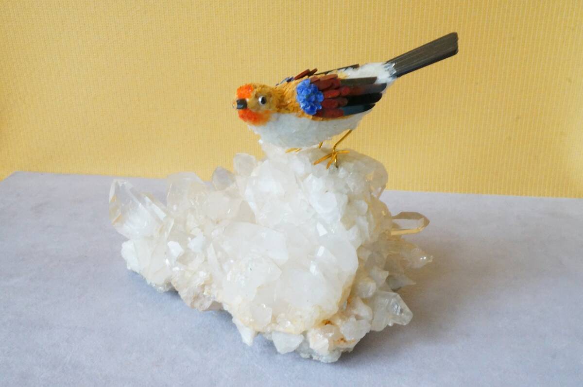 - 天然石の貴石鳥&水晶原石付飾り!貴石鳥ソーダライト、オニキス、メノウ、レッドジャスパー、タイガーアイ、ケイ石使用!山梨加工品
