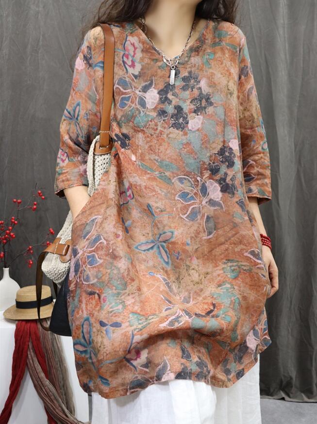 - 新入荷*シャツワンピース カジュアル チュニック レディース ロングシャツ プリント柄 長袖 トップス おしゃれ 通勤 お洒落 カーキ