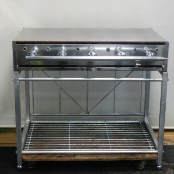 - (代引不可)1 AKS LPガス 卓上 グリドル ふちなし 鉄板焼機 脚付 W900D550厚9mm 外寸W91D56(+16)H83cm 鉄板34kg 9.07kw せんべい 架台15kg