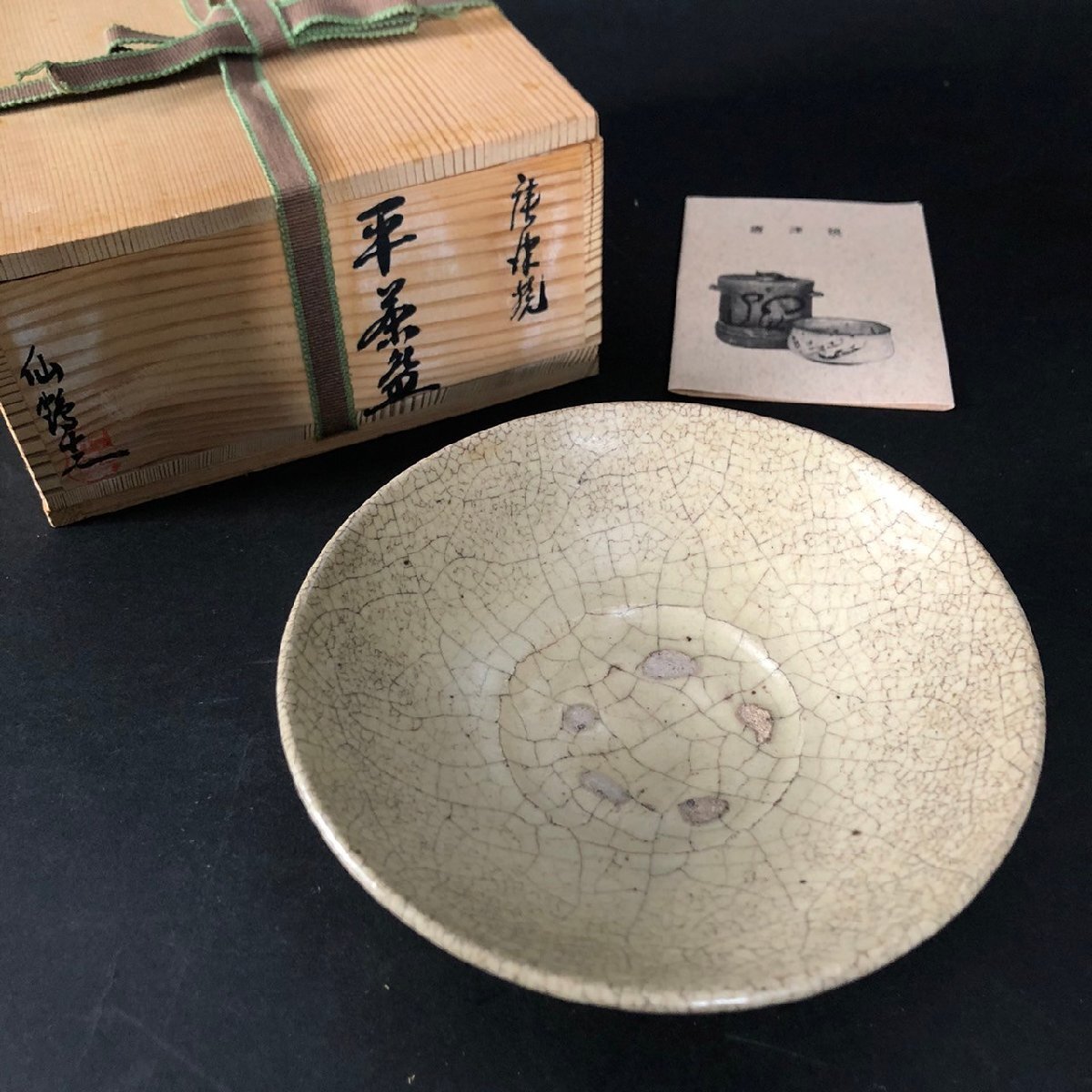 - SW0227-28-3 唐津焼 仙鶴窯 平茶盛 時代物 茶碗 萩焼 皿 陶芸 プレート 高さ5.5㎝ 直径16㎝ 60サイズ