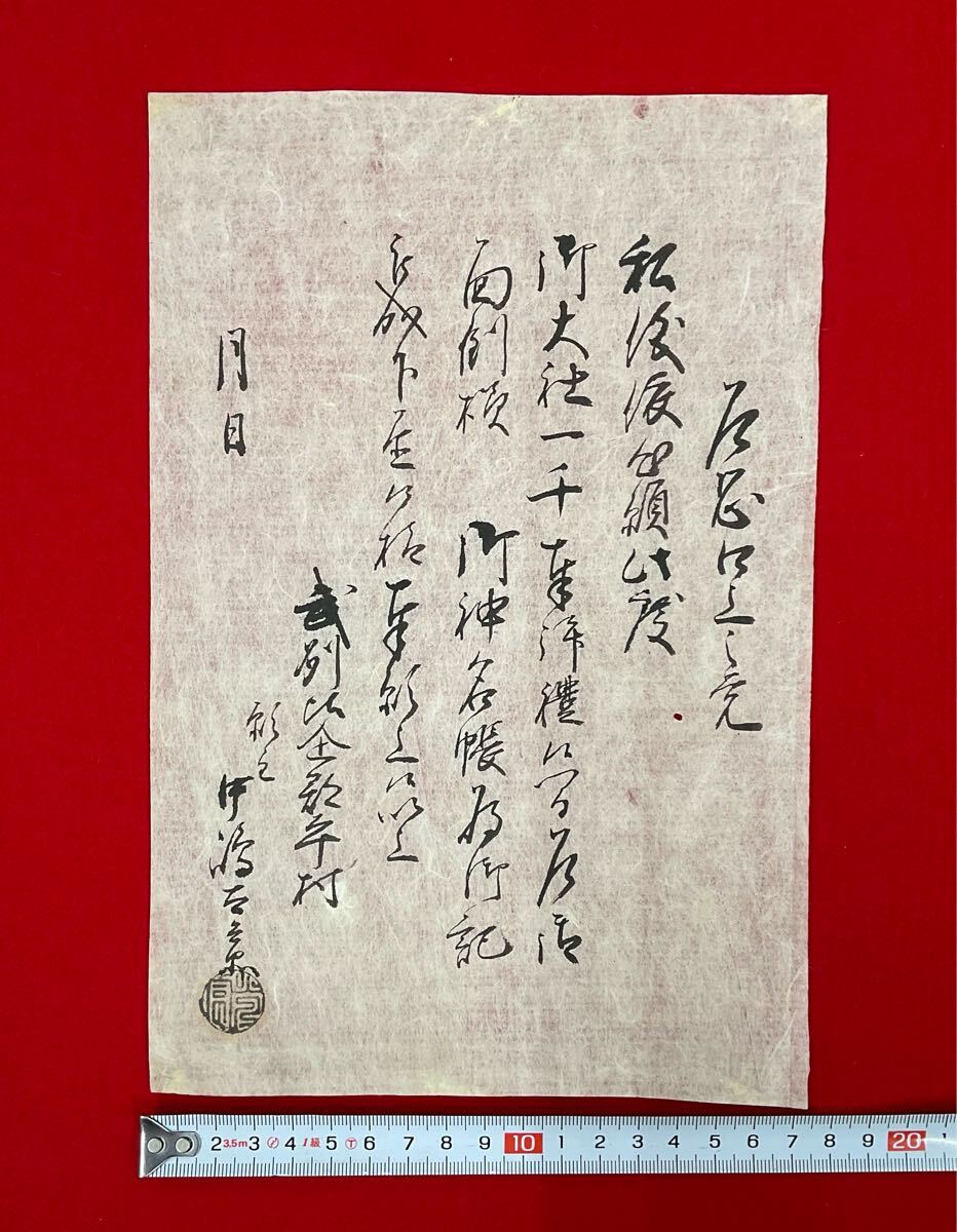 - 古文書 1枚 武州武蔵国比企郡中嶋 神社 古文書 手紙 書簡 書道 書状 江戸幕末明治期