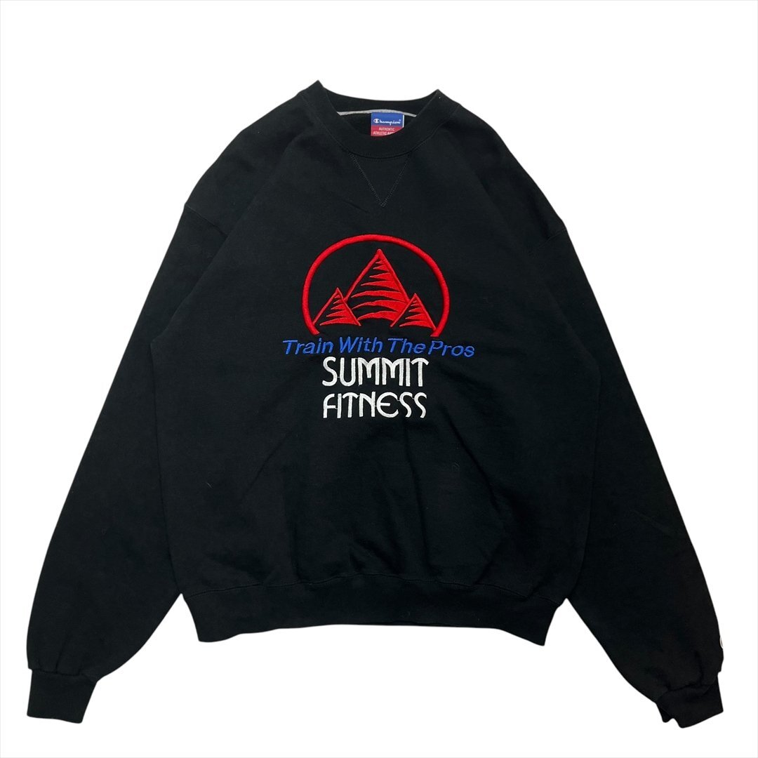 - 90s~00s Vintage チャンピオン Summit Fitness 裏起毛 スウェット トレーナー ブラック Champion 古着 メンズ M スエット ヴィンテージ