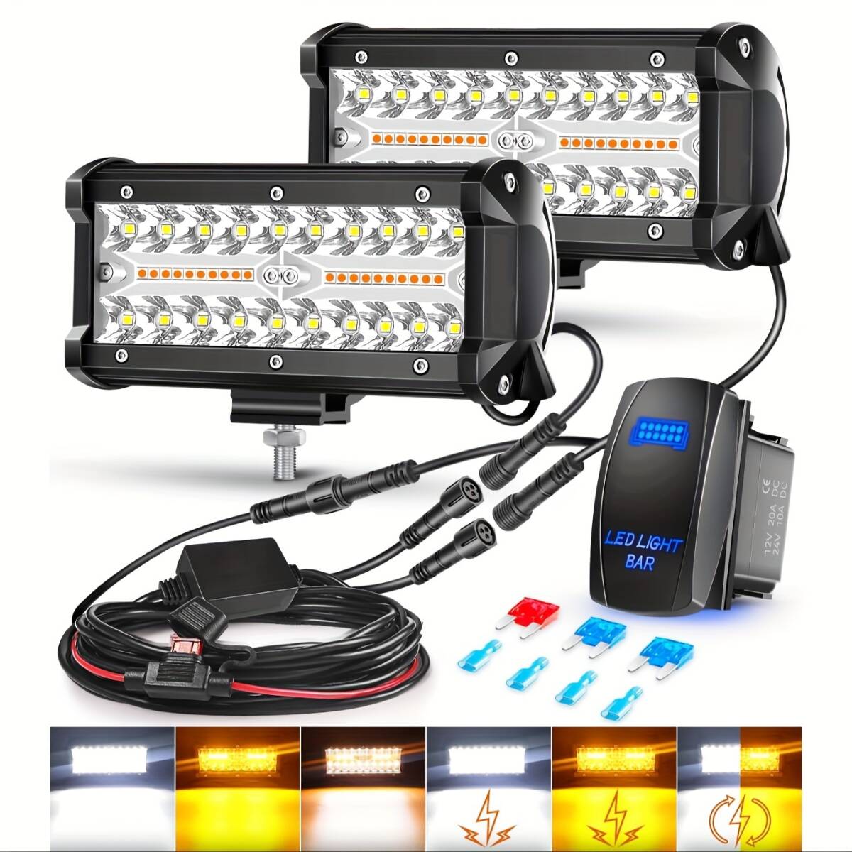 - 2個セット LEDヘッドライト 18cm 車用 ホワイト イエロー トラック 40LED 点滅 フラッシュ 防水 明るい 12-24V スイッチ 配線付き t3299