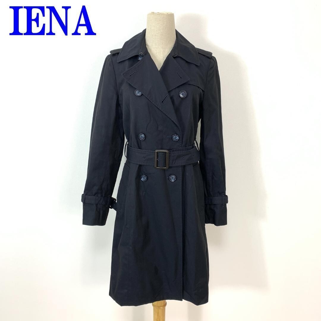 - イエナ トレンチコート 綿 コットン 裏地有 IENA ネイビーベルト付き 紺 38 C2068
