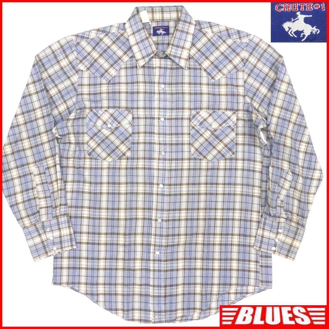 > 即決★CHUTE#1★メンズXL位 ウエスタンシャツ シュート 水色 チェック 長袖 70’s ヴィンテージ