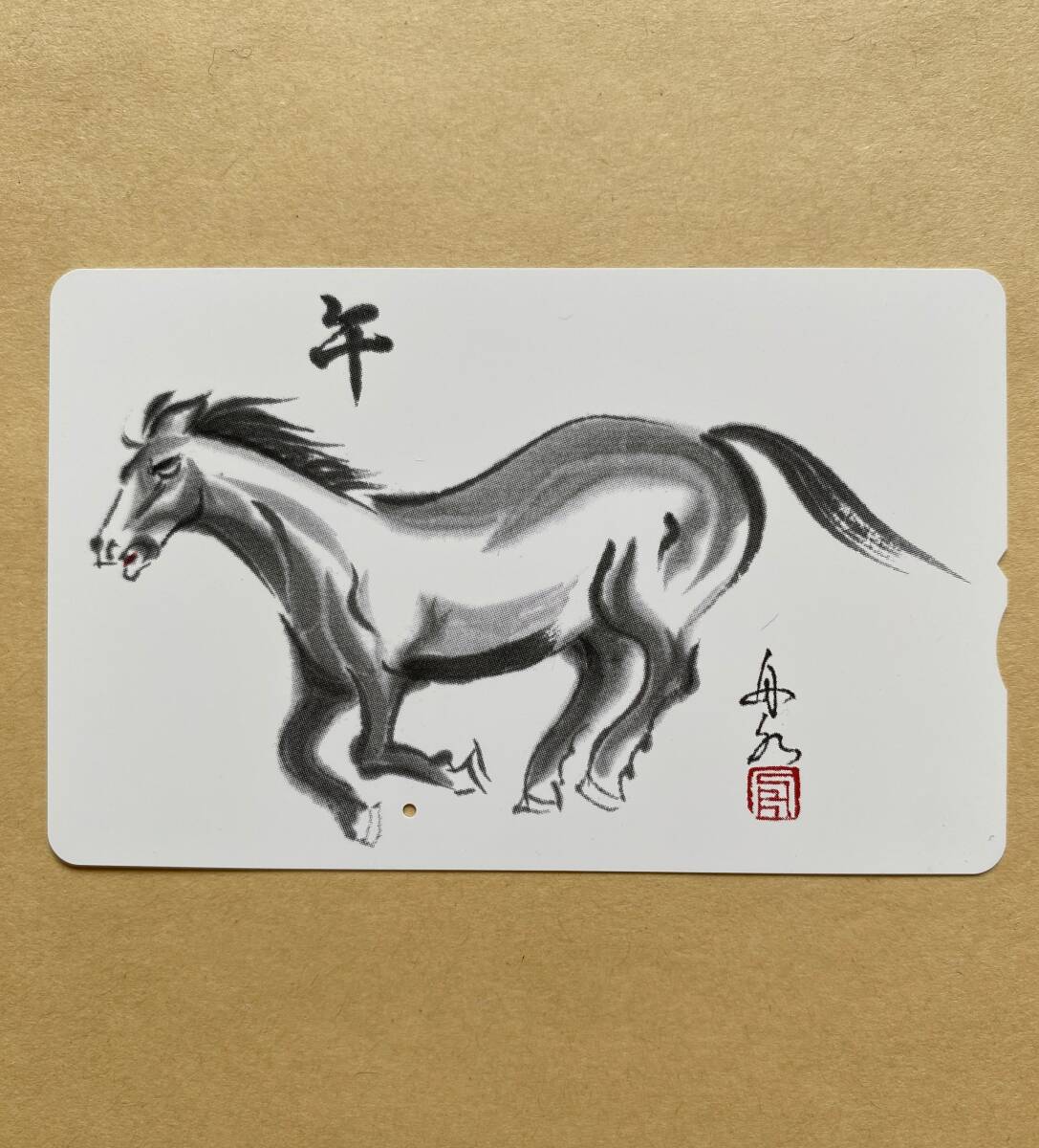 - 【使用済】 ふみカード 干支 午 馬 水墨画