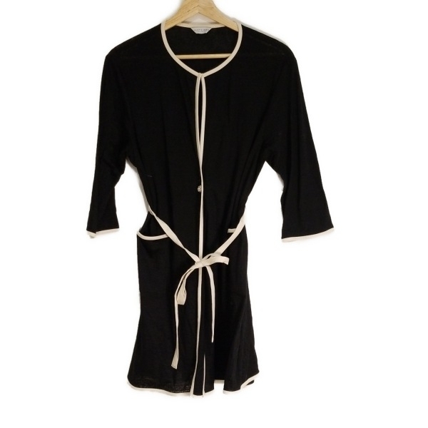 > オースチンリード Austin Reed カーディガン サイズ38 L - 黒×アイボリー レディース 七分袖/麻/ロング丈/パール/ラインストーン トップス