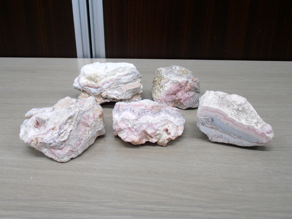北海道稲倉石鉱山 ロードクロサイト(菱マンガン鉱)5個セットの出品です。