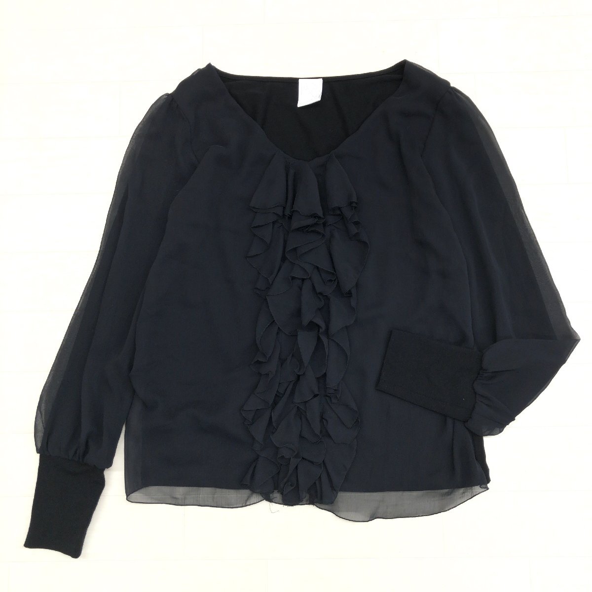 > 美品 PUPULA ププラ レイヤード フリル シフォン カットソー 38(M) 黒 ブラック 日本製 シャツ ブラウス 長袖 国内正規品 レディース