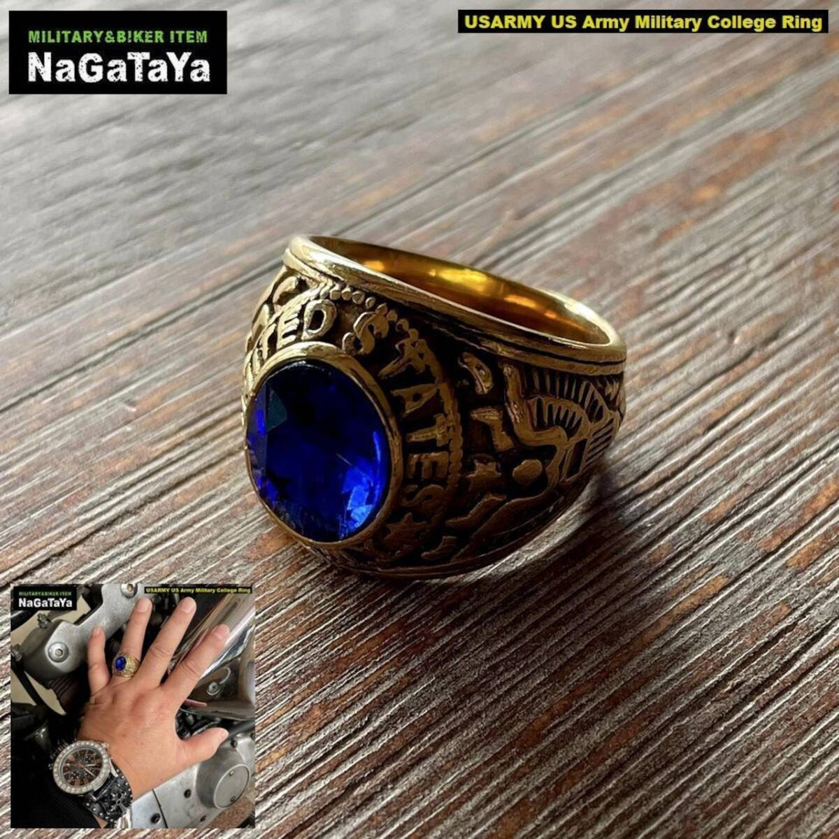 - US.ARMY 米軍 ミリタリー ステンレスチール素材 ジュエルストーン カレッジリング 21号 ゴールド メンズ アクセサリー UNITED STATES ARMY